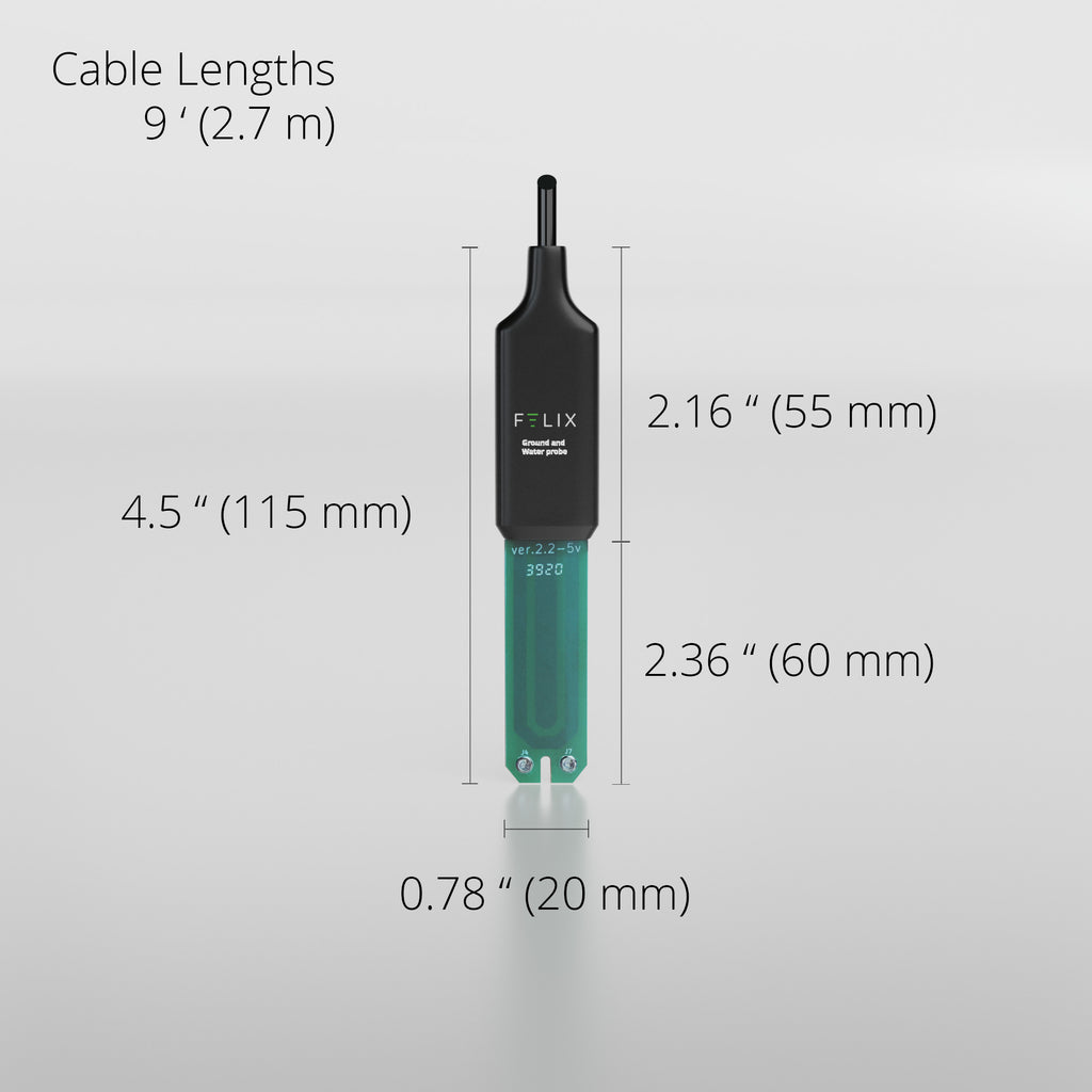 Monitor your environment with the Felix Smart Temperature and Moisture Probe. All of our probes come pre-calibrated, saving you the hassle of initial calibration. Simply connect it to your Felix Smart Controller via USB and you can begin monitoring Ground Moisture, Ground and Water Temperature, EC, TDS, and Water Presence.